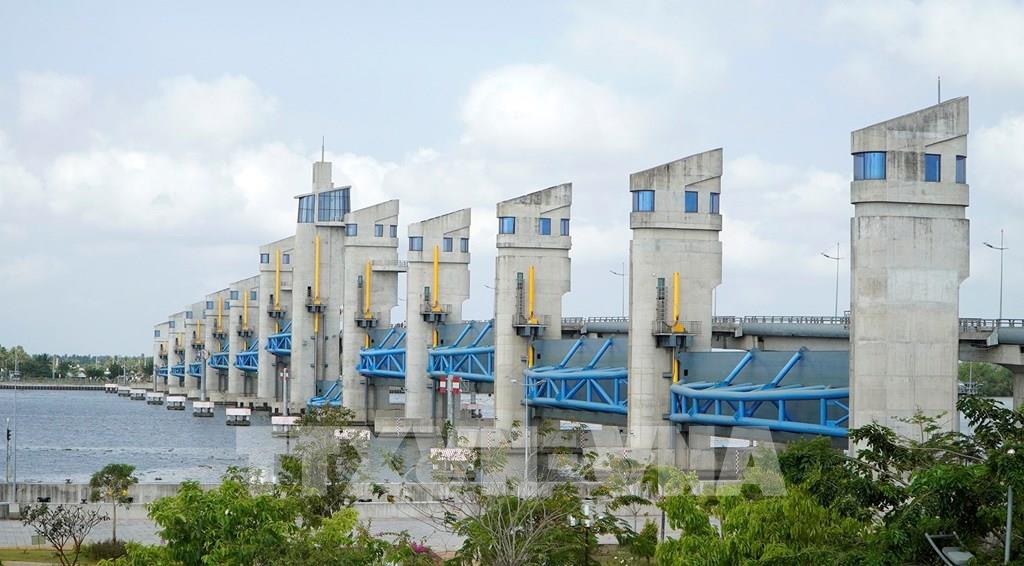 Công trình cống thủy lợi Cái Lớn trên sông Cái Lớn. Ảnh: Lê Huy Hải - TTXVN