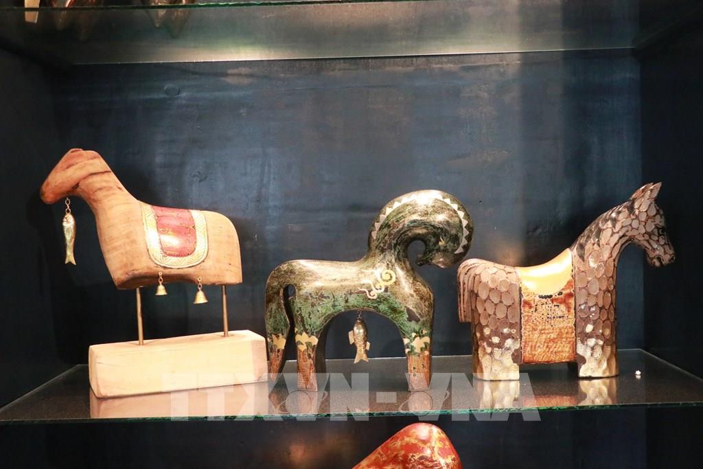 Các sản phẩm Ngựa sơn mài được làm từ những khúc củi trôi dạt sau lũ tại làng Củi Lũ (phường Hội An, thành phố Đà Nẵng) rất được ưa chuộng trong dịp Tết Nguyên đán Bính Ngọ 2026. Ảnh: Khoa Chương - TTXVN