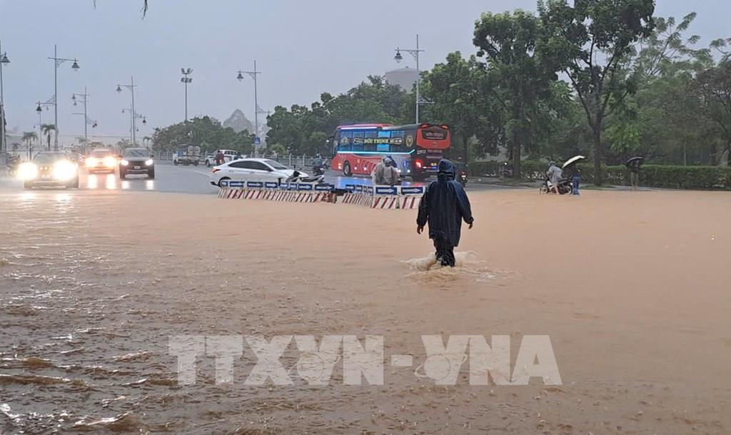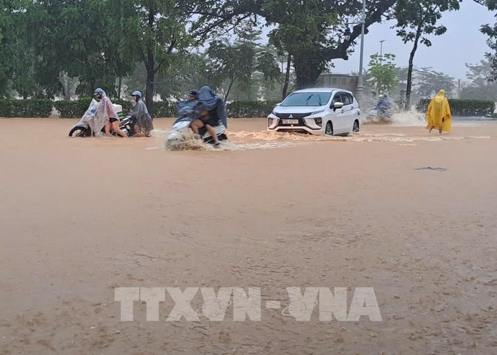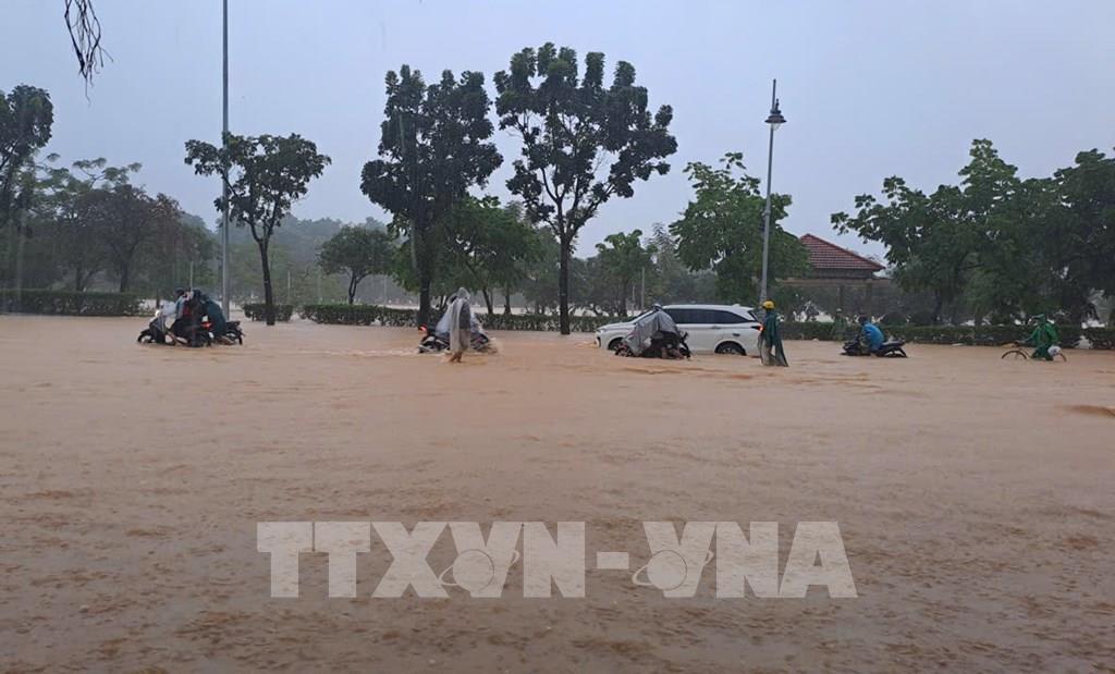 Đường Tôn Thất Tùng ở bờ Nam sông Hương, thành phố Huế tái ngập lụt do lũ lên lại. Ảnh: Nguyên Lý - TTXVN
