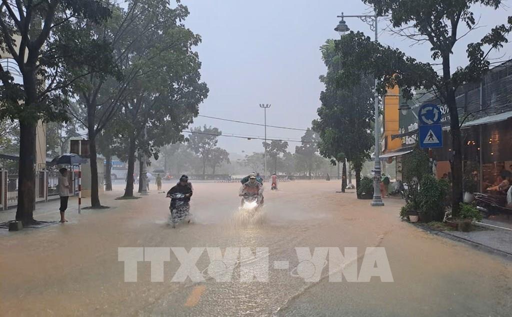 Đường Bùi Thị Xuân ở bờ Nam sông Hương, thành phố Huế tái ngập lụt do lũ lên lại. Ảnh: Nguyên Lý - TTXVN