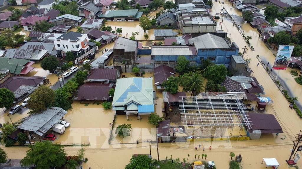 Cảnh ngập lụt sau những trận mưa lớn tại tỉnh Aceh, Indonesia. Ảnh: THX/TTXVN