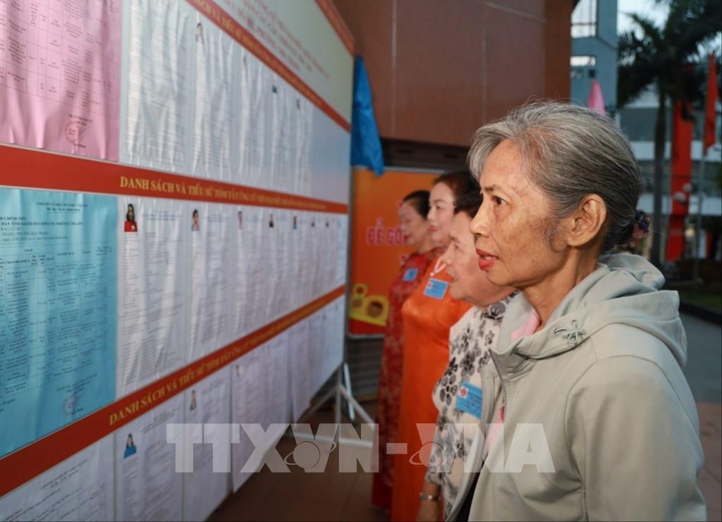 Cử tri phường Nha Trang theo dõi tiểu sử người ứng cử. Ảnh: Xuân Triệu - TTXVN