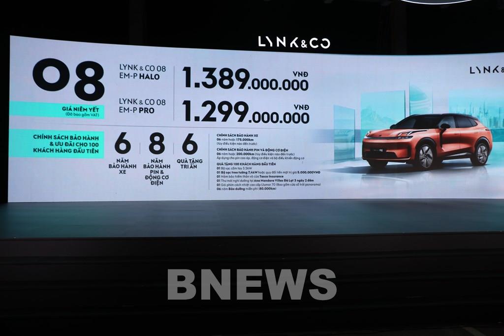 Mẫu D-SUV Lynk & Co 08 ra mắt thị trường Việt Nam với 2 phiên bản 08 EM-P Pro có giá bán 1,299 tỷ và Lynk & Co 08 EM-P Halo giá bán 1,389 tỷ đồng