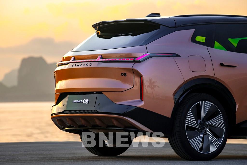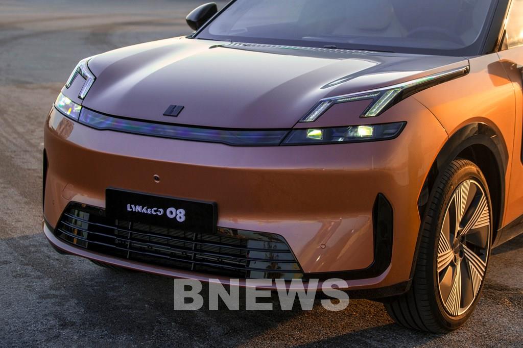 Lynk & Co 08 mang ngôn ngữ thiết kế hiện đại với phần đầu xe nổi bật nhờ cụm đèn LED hiệu ứng kim cương và kính không viền hiếm gặp trong phân khúc. Ảnh: Văn Xuyên/BNEWS/TTXVN