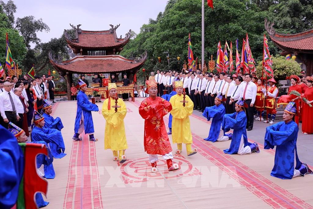 Thực hiện nghi thức tế truyền thống tại Đền thờ Quốc Tổ Lạc Long Quân. Ảnh: Hoàng Hùng - TTXVN