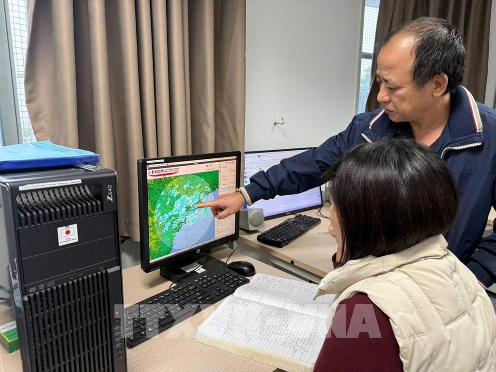 Cán bộ Đài Khí tượng thủy văn Hải Phòng kiểm tra hướng đi của bão trên hệ thống. Ảnh: Tiến Vĩnh – TTXVN
