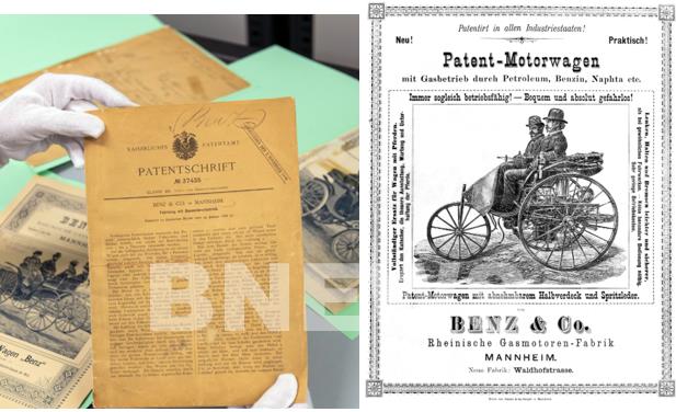 Bằng sáng chế cho chiếc ô tô đầu tiên trên thế giới – do Carl Benz đệ trình vào năm 1886 – hiện là một tài liệu do UNESCO bảo hộ