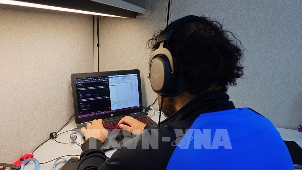Giảng viên Đại học Gualadajara (UDG), bang Jalisco của Mexico, đang giới thiệu mô hình học trực tuyến tại trường. Ảnh: Phi Hùng - PVTTXVN tại Mexico