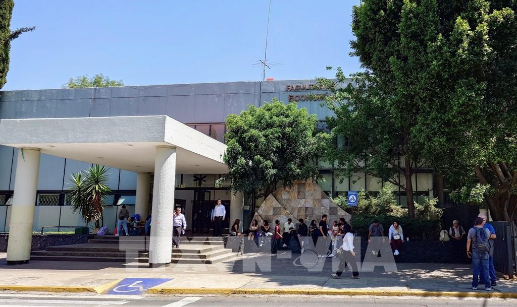 Cổng vào Khoa Kinh tế Đại học Tự trị Quốc gia Mexico (UNAM) - một trong những cơ sở đào tạo đại học và sau đại học lớn nhất thế giới, với gần 500.000 sinh viên. Ảnh: Phi Hùng - PVTTXVN tại Mexico