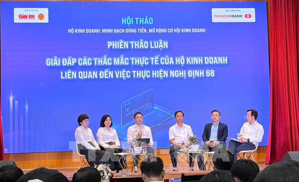 Phiên thảo luận giải đáp các thắc mắc thực tế của hộ kinh doanh liên quan đến việc thực hiện Nghị định số 68/2026/NĐ-CP của Chính phủ. Ảnh: Hứa Chung-TTXVN
