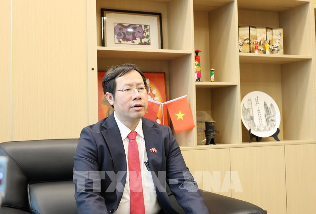 Tổng Lãnh sự Việt Nam tại Trùng Khánh (Trung Quốc) Bùi Nguyên Long trả lời phỏng vấn phóng viên TTXVN tại Trung Quốc. Ảnh: Công Tuyên - PV TTXVN