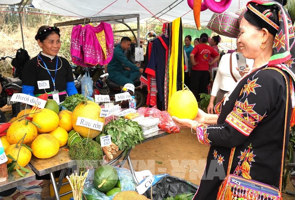 Các sản phẩm nông sản, đặc sản truyền thống của địa phương được đông đảo du khách lựa chọn tại Chợ Thụt, xã Phù Lưu (tỉnh Tuyên Quang). Ảnh: Minh Tâm - TTXVN