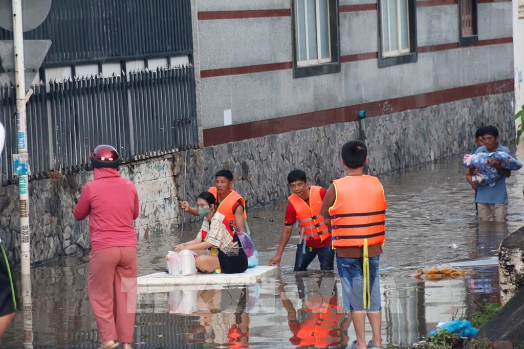 Người dân những khu vực ngập sâu di chuyển đến nơi ở khác. Ảnh: Nguyễn Thanh - TTXVN  Người dân những khu vực ngập sâu di chuyển đến nơi ở khác. Ảnh: Nguyễn Thanh - TTXVN