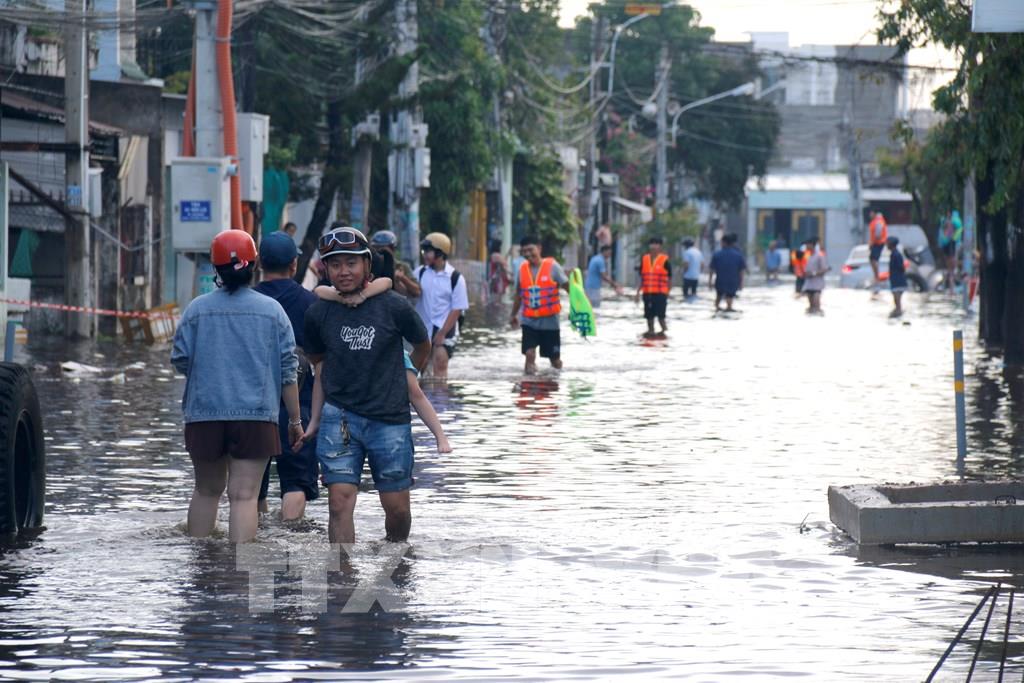 Quốc lộ 1A đoạn qua địa bàn phường Hàm Thắng (Lâm Đồng) bị ngập sâu trong nước. Ảnh: Nguyễn Thanh - TTXVN  Người dân những khu vực ngập sâu di chuyển đến nơi ở khác. Ảnh: Nguyễn Thanh - TTXVN