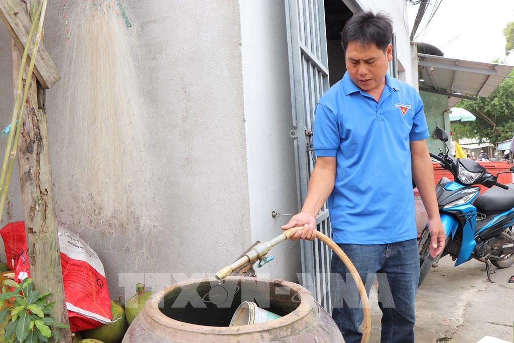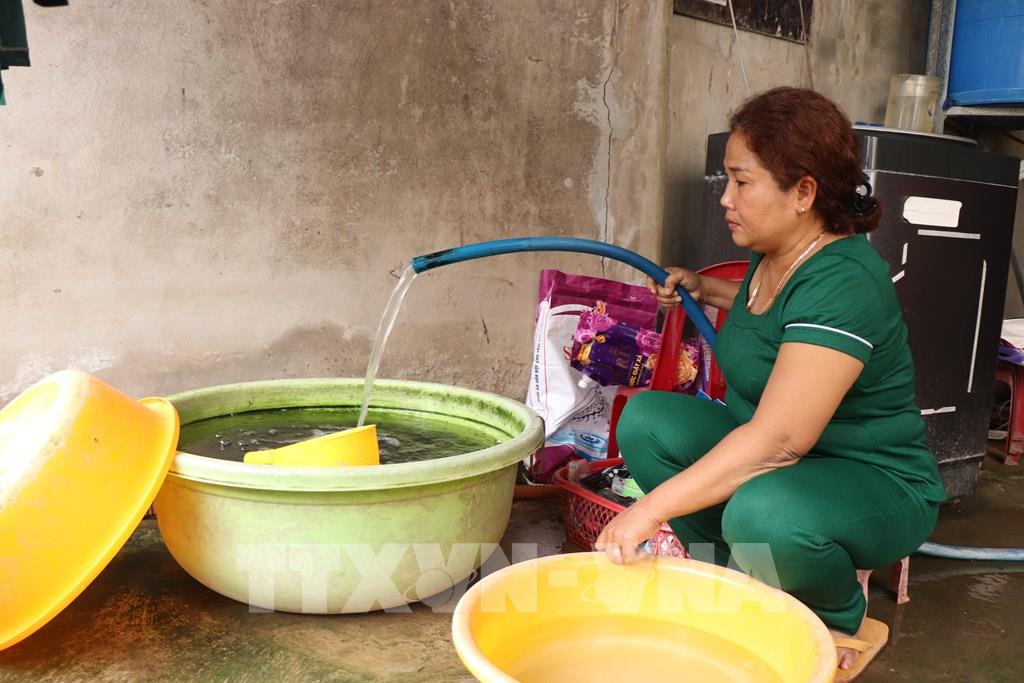 Nước giếng khoan thường có mùi hôi nên người dân ở phường Khánh Hòa (TP. Cần Thơ) chỉ dùng để tắm giặt, còn nước ăn uống vẫn phải mua nước bình để đảm bảo sức khỏe. Ảnh: Thu Hiền - TTXVN