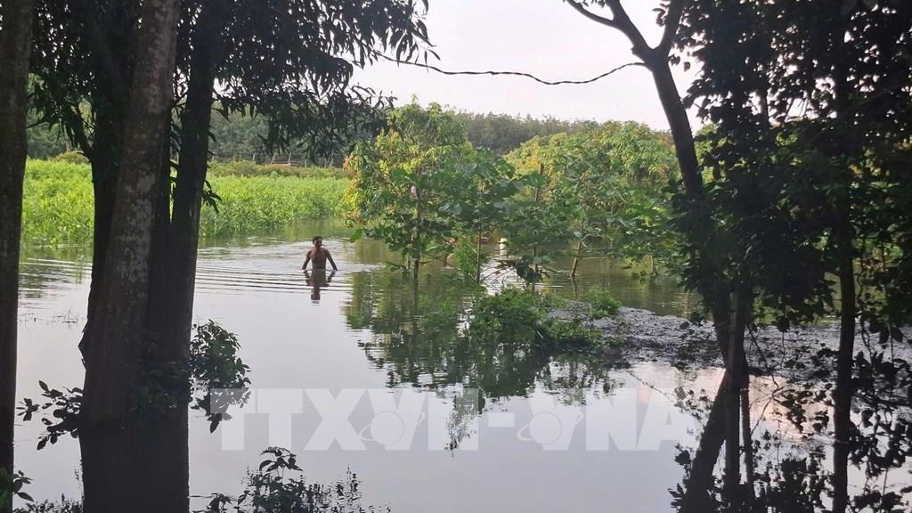 Vườn cây của các hộn dân tại ấp Tân Rú, xã Hồ Tràm ngập sâu trong nước, ảnh chụp ngày 15/11. Ảnh: Hoàng Nhị - TTXVN