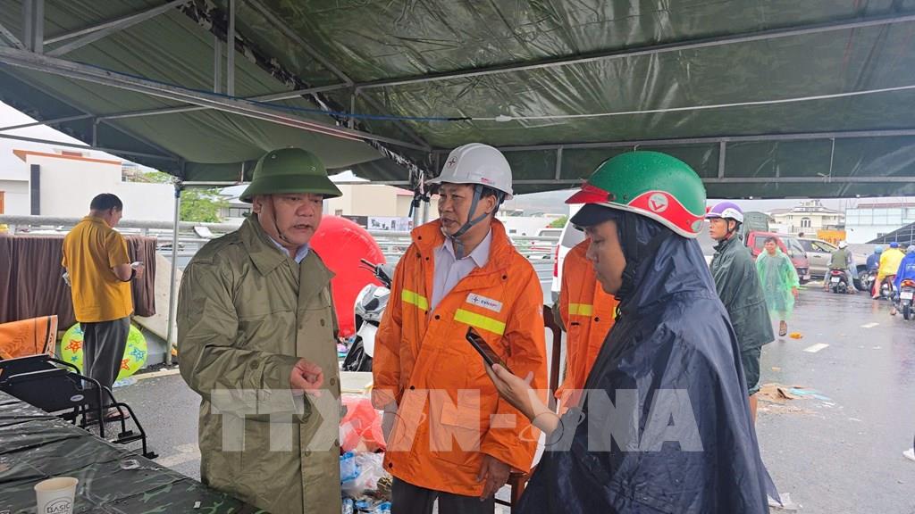Ông Trần Phong (Trái), Chủ tịch UBND tỉnh Khánh Hòa chỉ đạo Tổng Công ty Điện lực Khánh Hòa phải tuyệt đối đảm bảo an toàn cho người dân. Ảnh: Đặng Tuấn - TTXVN