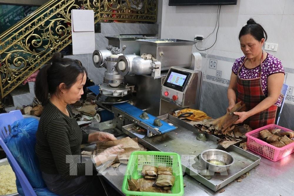 Vụ Tết, mỗi ngày cơ sở sản xuất bánh gai Nga Tới làm ra khoảng 5.000 chiếc bánh, trong đó có 3.000 bánh gai và 2.000 bánh gấc. Ảnh: Mạnh Minh – TTXVN