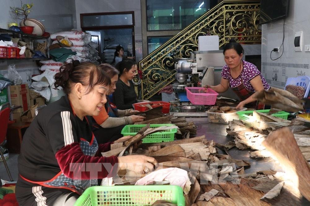 Nghề làm bánh gai đã giúp nhiều hộ gia đình có kinh tế khá giả, tạo nhiều công ăn việc làm cho lao động địa phương. Ảnh: Mạnh Minh – TTXVN