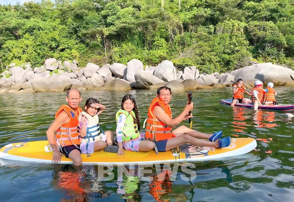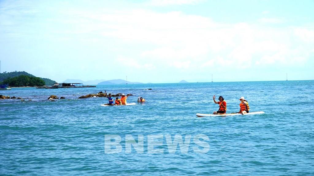 Du khách vui chơi tại đảo Hòn Sơn, đặc khu Kiên Hải. Ảnh: Văn Sĩ-TTXVN
