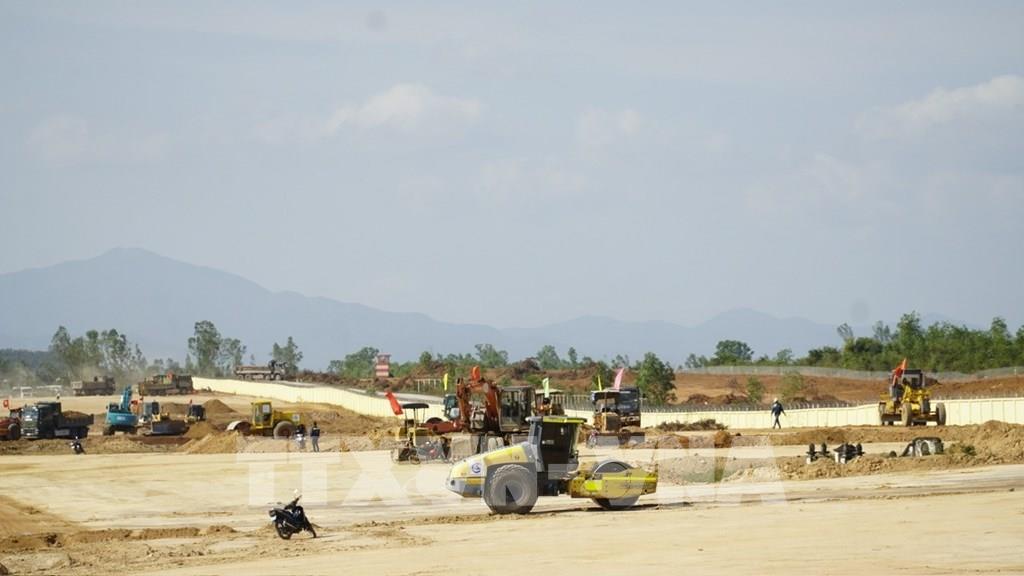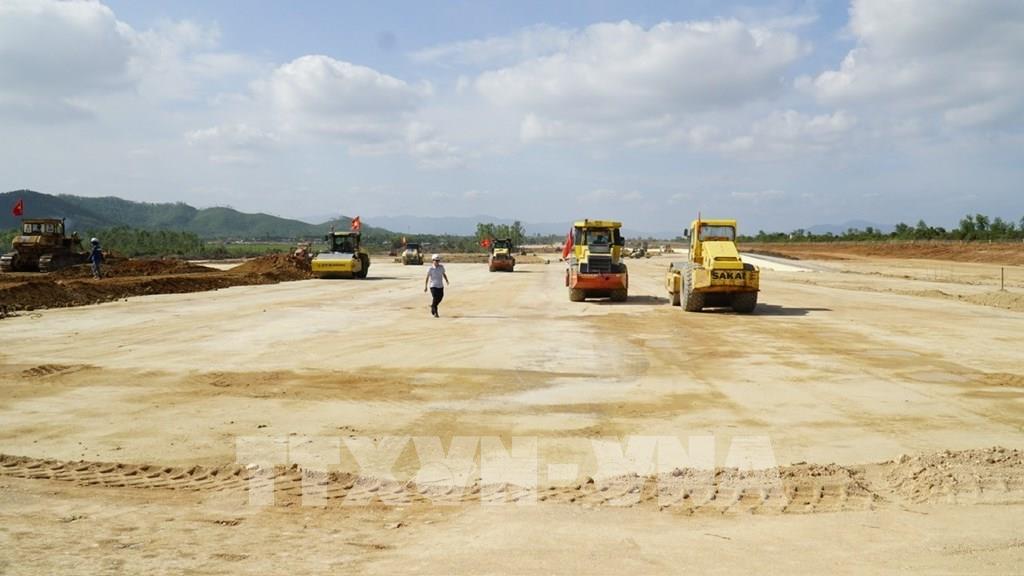 Thi công đường cất, hạ cánh số 2, cảng Hàng không Phù Cát. Ảnh: Sỹ Thắng - TTXVN