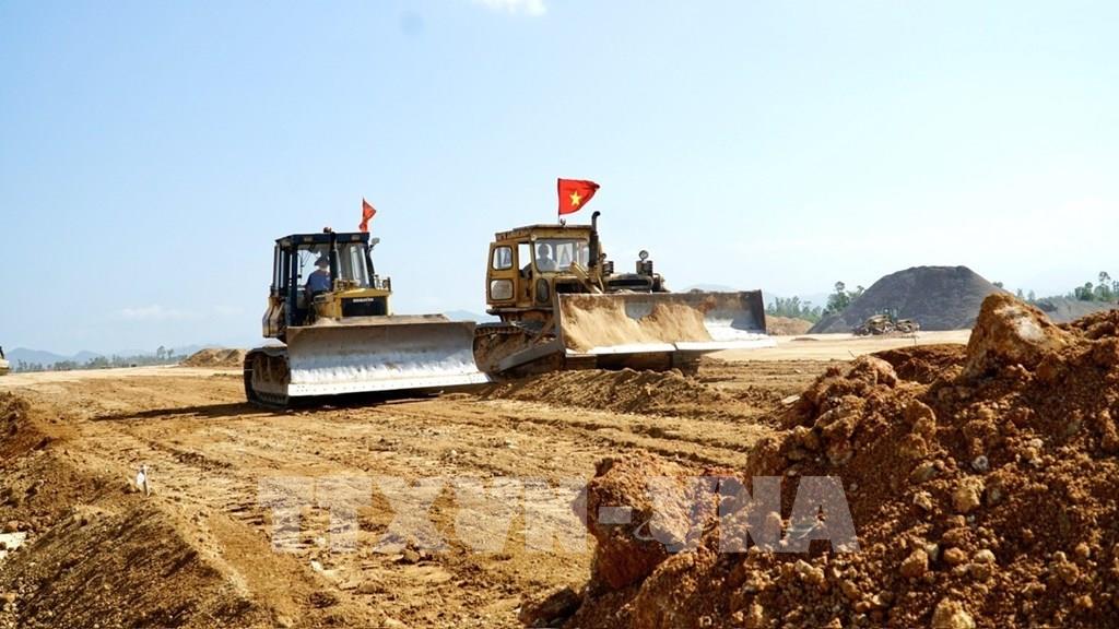 Đẩy mạnh thi công công trình đường cất cánh số 2, cảng hàng không Phù Cát xuyên Tết. Ảnh: Sỹ Thắng - TTXVN