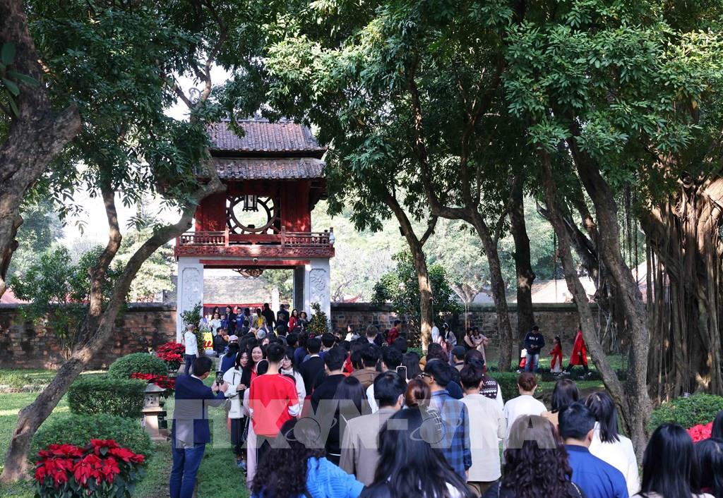 Người dân du xuân tại khu di tích lịch sử Văn Miếu - Quốc Tử Giám (Hà Nội). Ảnh tư liệu: Phạm Kiên - TTXVN