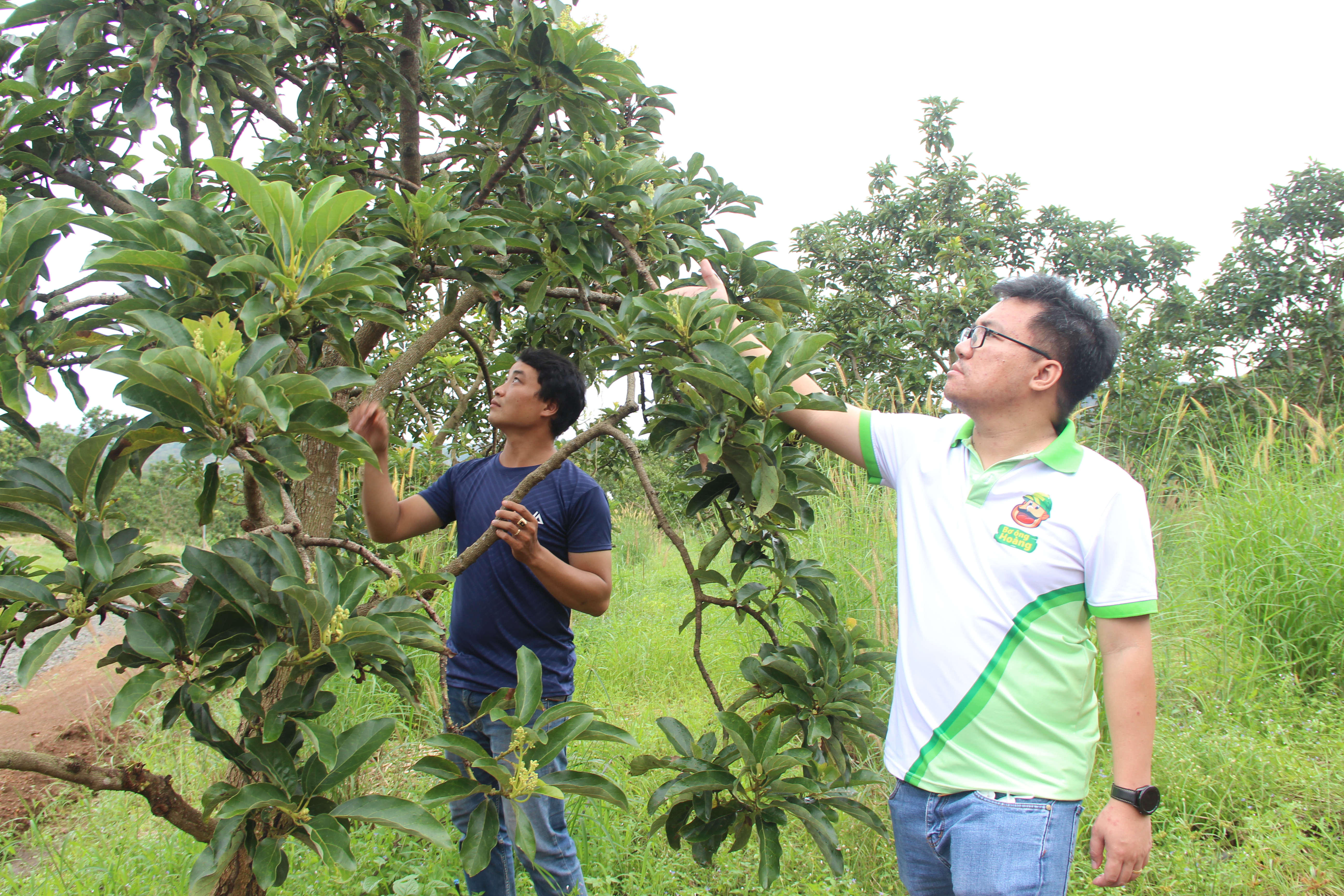 Anh Hoàng kiểm tra vườn cây. Ảnh: BNEWS