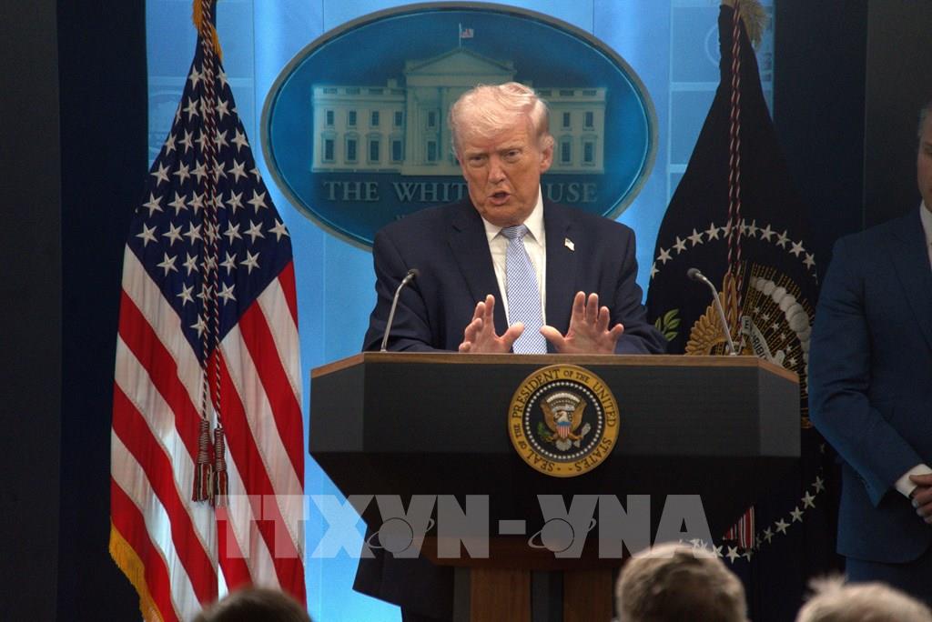 Tổng thống Mỹ Donald Trump phát biểu trong cuộc họp báo ở Nhà Trắng ngày 6/4/2026. Ảnh: THX/TTXVN