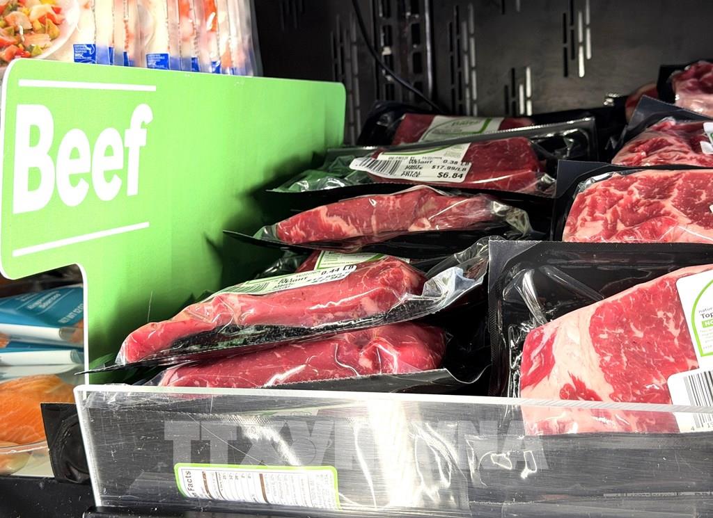 Thịt bò được bày bán tại một siêu thị ở trung tâm thủ đô Washington D.C. Ảnh: Ngọc Quang - PV TTXVN tại Mỹ