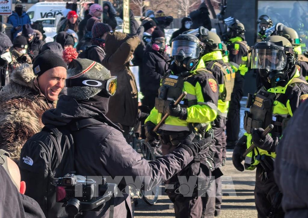 Lực lượng an ninh được triển khai trong bối cảnh diễn ra biểu tình ở thành phố Minneapolis, bang Minnesota, Mỹ ngày 24/1/2026. Ảnh: THX/TTXVN