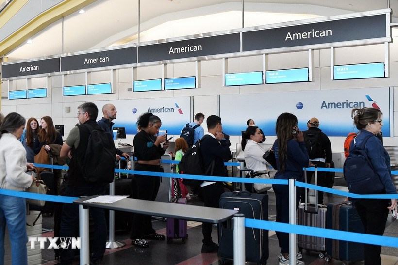 Hành khách chờ làm thủ tục tại sân bay quốc gia Ronald Reagan Washington ở Arlington, Virginia, Mỹ. Ảnh: THX/TTXVN