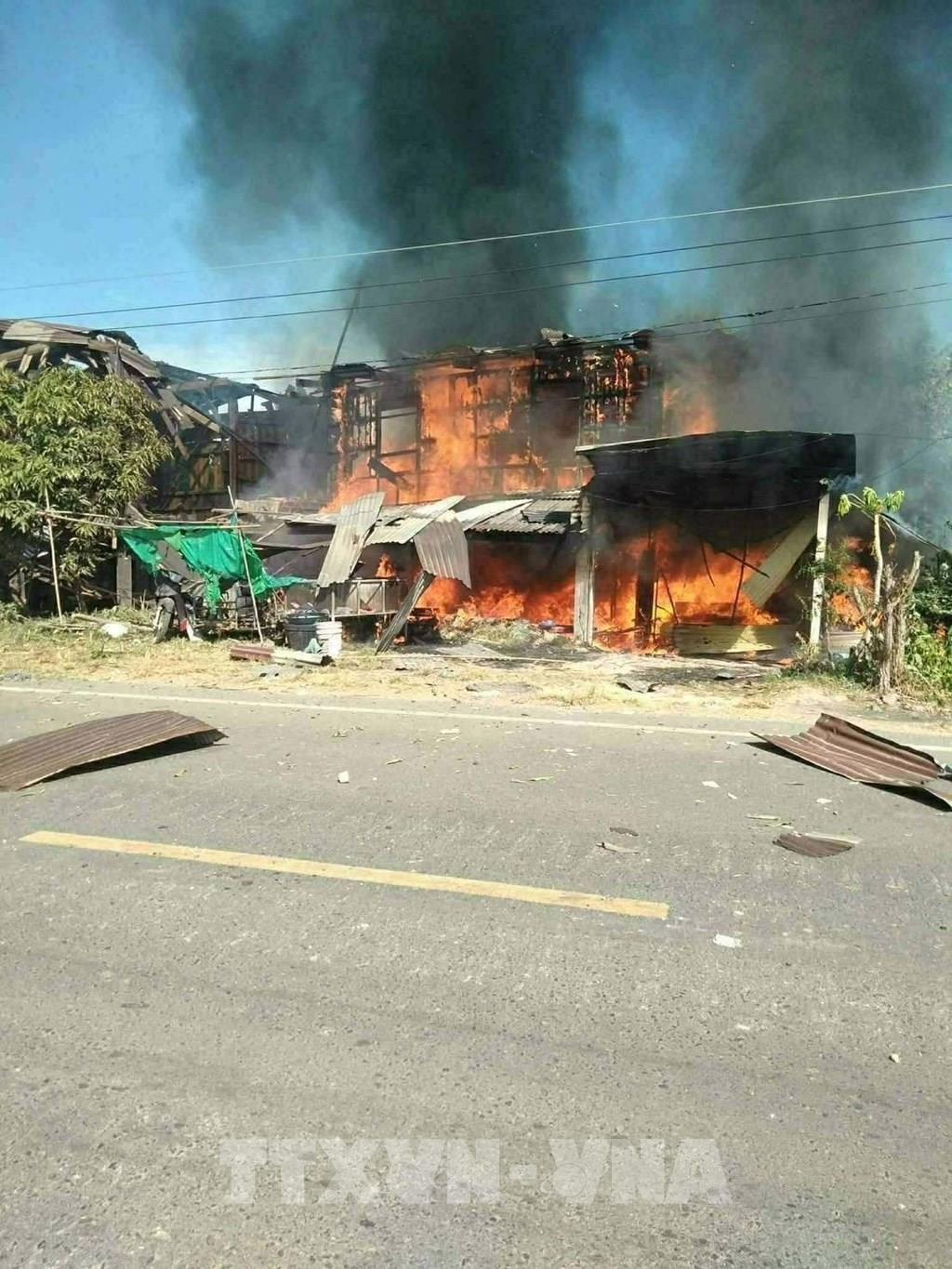 Một ngôi nhà ở tỉnh Sisaket, Thái Lan bị phá huỷ do trúng đạn pháo trong xung đột biên giới với Campuchia, ngày 13/12/2025. Ảnh: THX/TTXVN