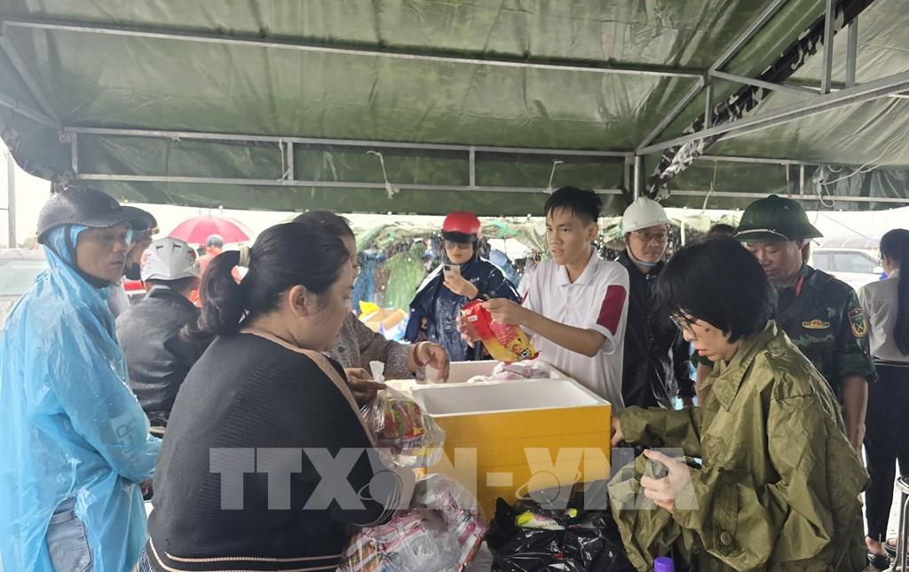 Điểm tiếp tế lương thực, thực phẩm cho người dân ở vùng ngập trong những ngày sơ tán 20-21/11. Ảnh: Đặng Tuấn - TTXVN