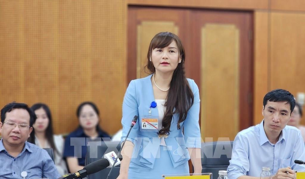 Bà Nguyễn Thị Tú Thanh, Phó Vụ trưởng Vụ Chính quyền địa phương, Bộ Nội vụ trả lời tại họp báo. Ảnh: Chu Thanh Vân - TTXVN