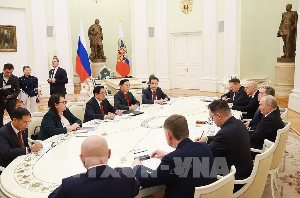 Thủ tướng Phạm Minh Chính hội kiến Tổng thống Nga Vladimir Putin. Ảnh: Dương Giang - TTXVN