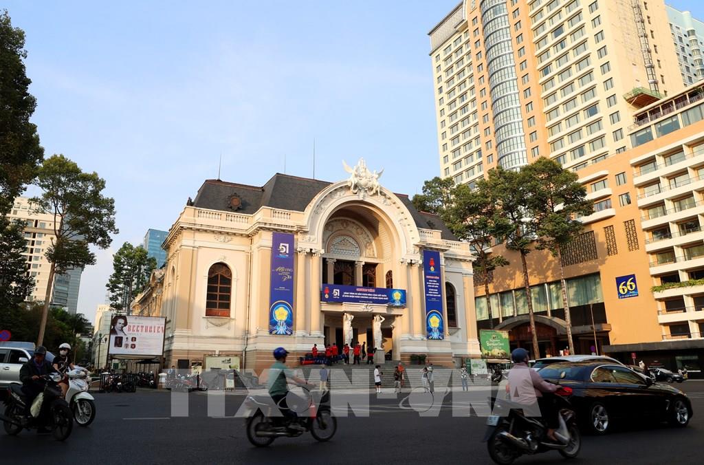 Nhà hát Thành phố được coi là điểm nhấn văn hóa, kiến trúc cổ kính giữa lòng TP. Hồ Chí Minh. Ảnh: Hồng Đạt - TTXVN