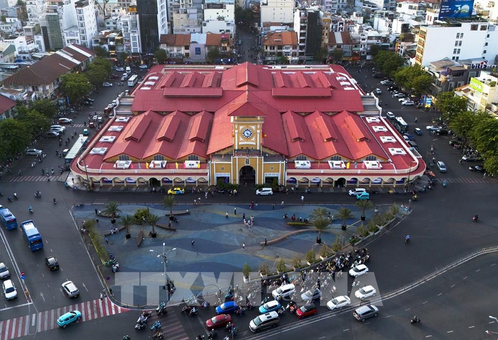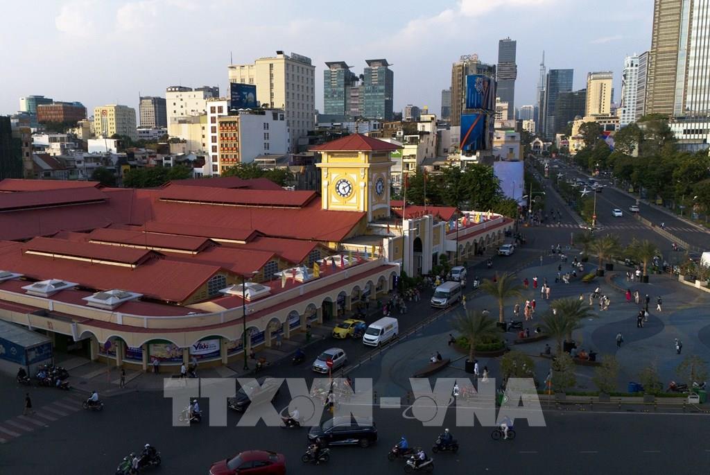 Chợ Bến Thành góp phần tạo cảnh quan du lịch đặc trưng khu vực trung tâm TP. Hồ Chí Minh. Ảnh: Hồng Đạt - TTXVN