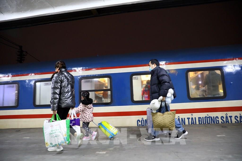 Một gia đình đang vội vã lên tàu về quê hương. Ảnh tư liệu: Huy Hùng - TTXVN