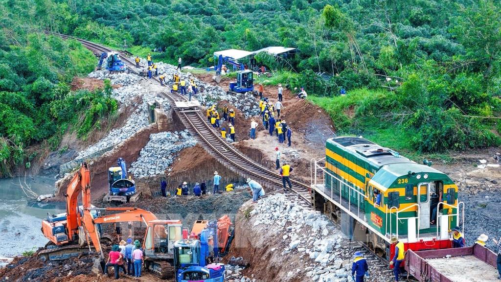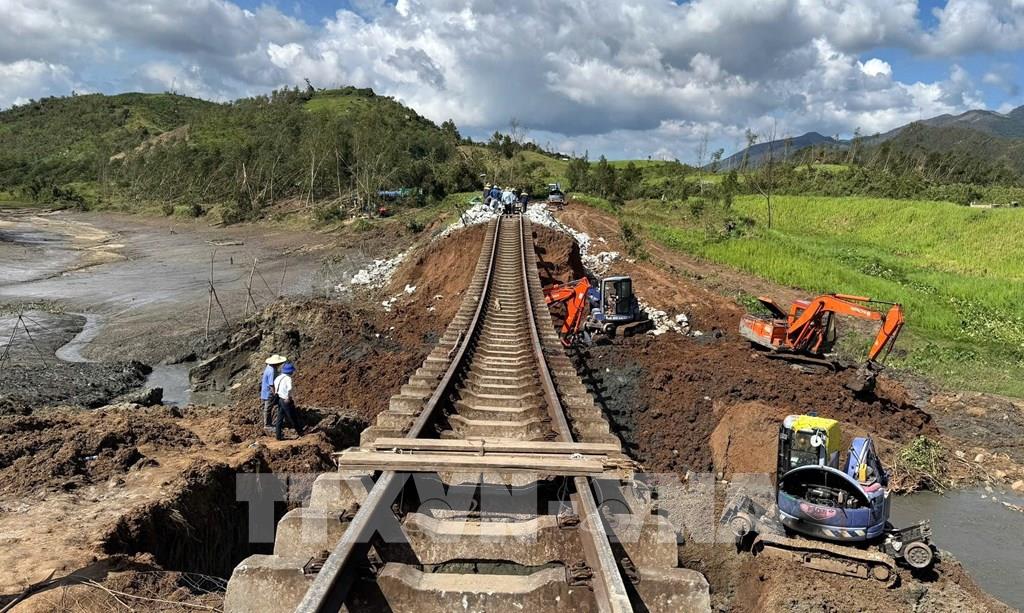 Ngày 9/11, Tổng Công ty Đường sắt Việt Nam tiếp tục huy động hàng trăm công nhân cùng nhiều phương tiện và vật tư cần thiết để ứng cứu, khắc phục sự cố sạt lở tại Km1136 với hơn 90 mét thuộc xã Xuân Lãnh (tỉnh Đắk Lắk) do bão số 13 gây ra vào tối 6/11.