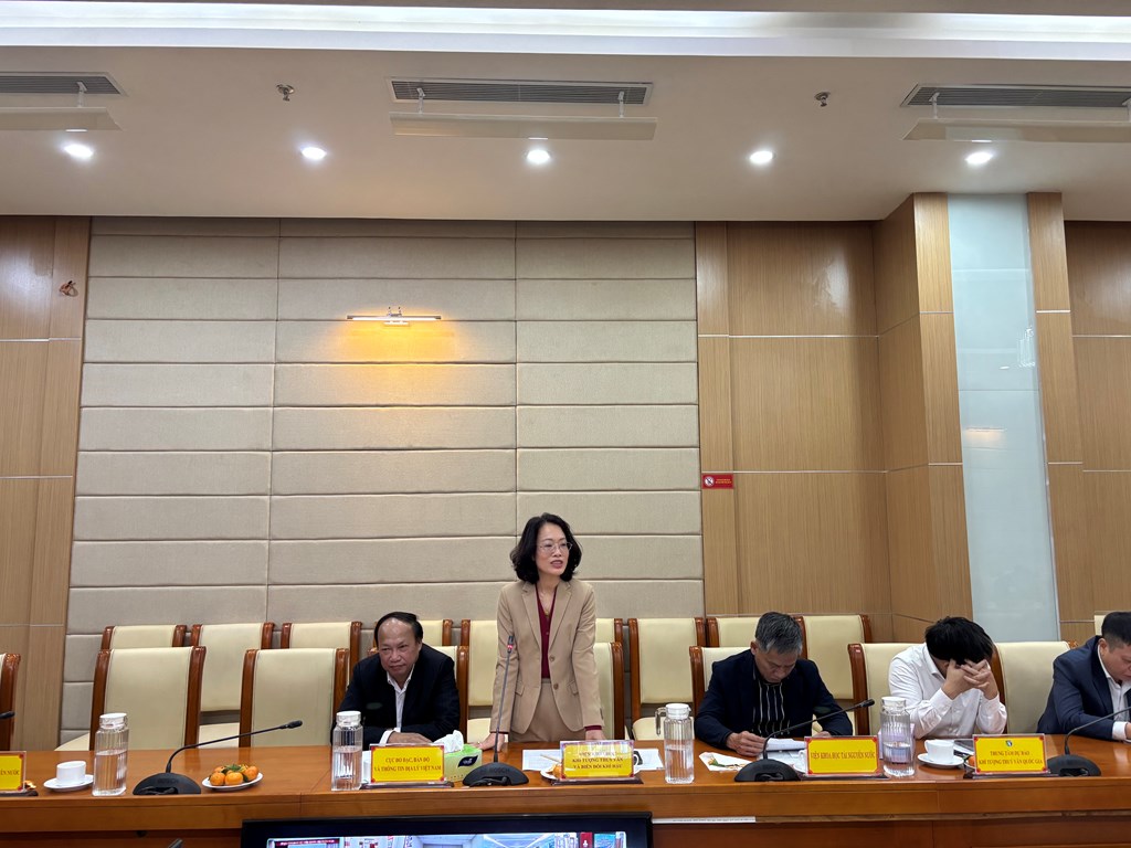 Viện trưởng Phạm Thị Thanh Ngà trao đổi về công tác phối hợp đối với lĩnh vực khí tượng thuỷ văn. Ảnh: Thắng Trung/Bnews/vnanet.vn