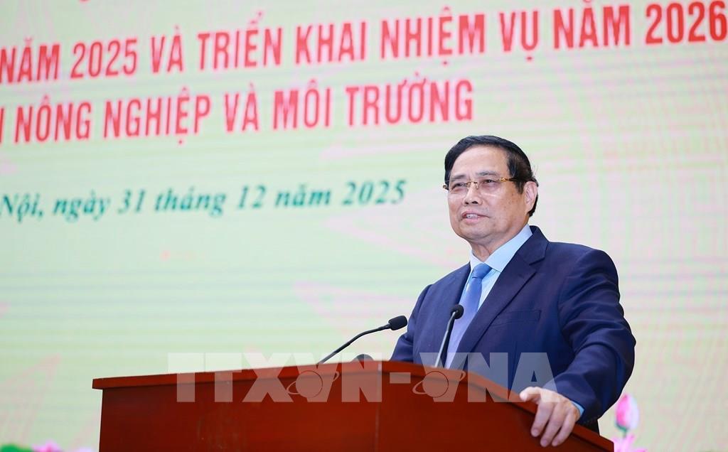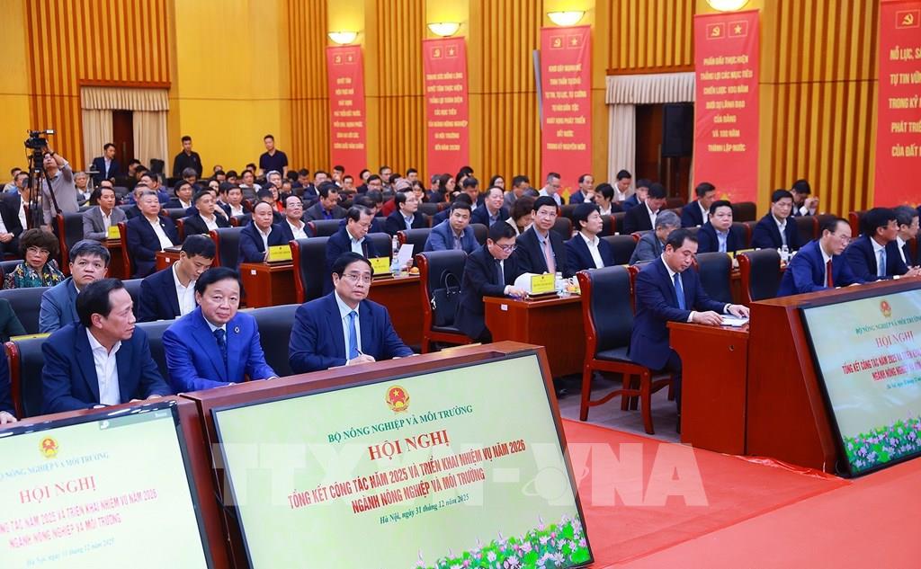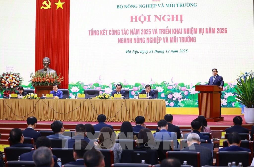 Thủ tướng Phạm Minh Chính dự Hội nghị triển khai nhiệm vụ năm 2026 của ngành Nông nghiệp và Môi trường. Ảnh: Dương Giang-TTXVN