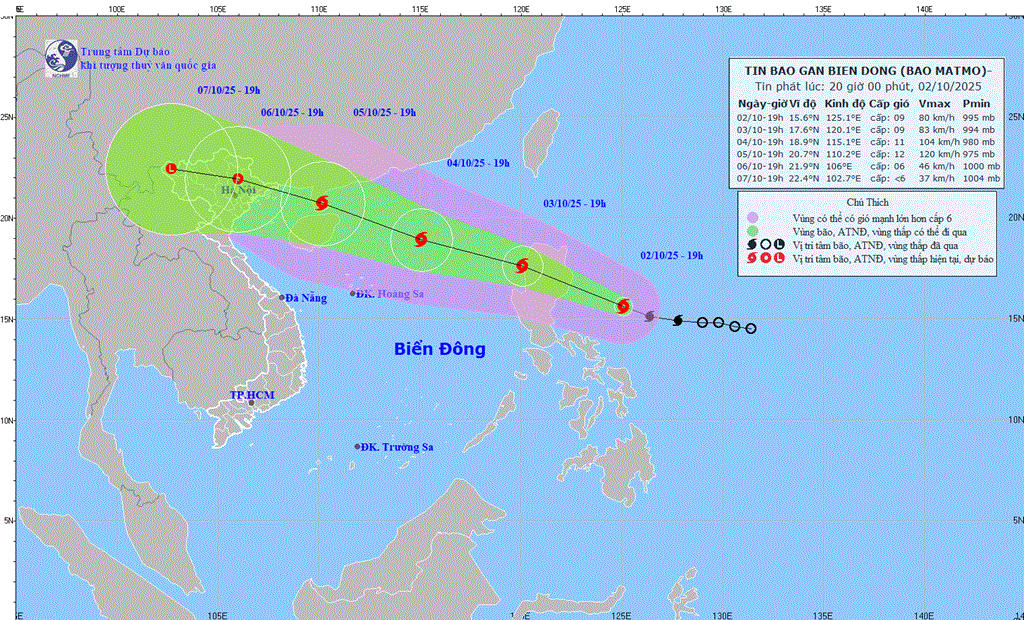 Ngày 4/10, bão MATMO đi vào Biển Đông và có khả năng mạnh thêm