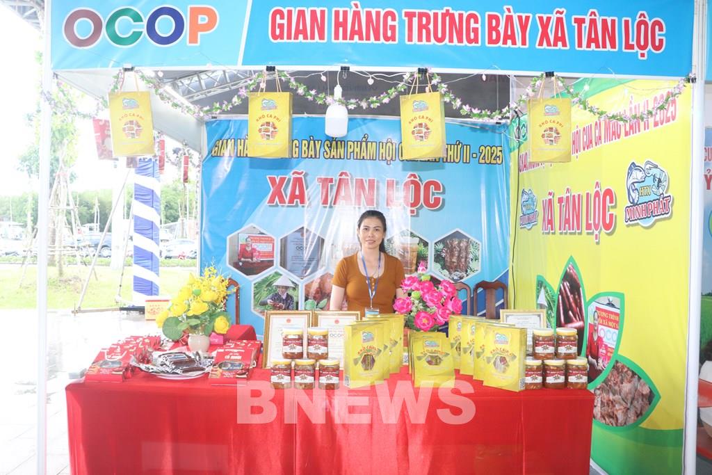 Gian hàng trưng bày xã Tân Lộc tại Ngày hội cua Cà Mau lần thứ II. Ảnh: Tuấn Phi/TTXVN