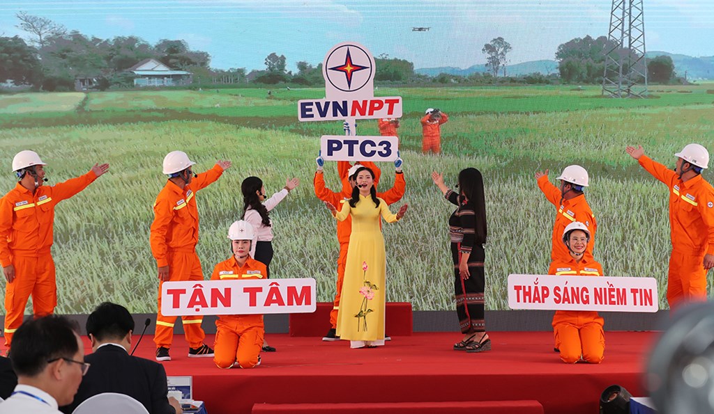 Phần thi của Công ty Truyền tải điện 3 với chủ đề "Tận tâm". Ảnh: Minh Hằng/Vnanet.vn/Bnews.vn
