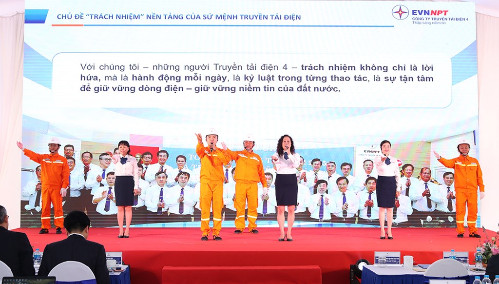 Phần thi của Công ty Truyền tải điện 4 với chủ đề "Trách nhiệm". Ảnh: Minh Hằng/Vnanet.vn/Bnews.vn
