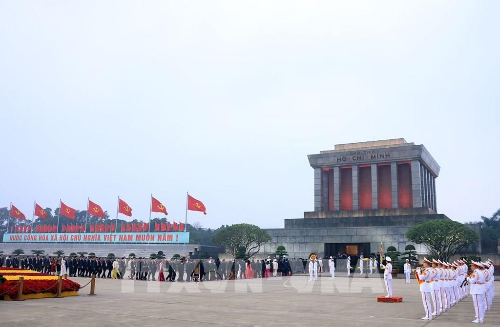 Các đại biểu vào Lăng viếng Chủ tịch Hồ Chí Minh. Ảnh: TTXVN
