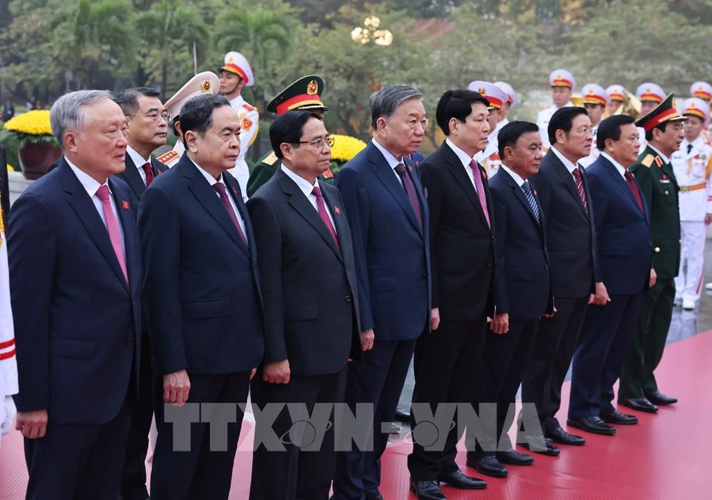 Đoàn đại biểu lãnh đạo Đảng, Nhà nước do Tổng Bí thư Tô Lâm dẫn đầu đến đặt vòng hoa tại Đài tưởng niệm các Anh hùng liệt sĩ trên đường Bắc Sơn (Ba Đình, Hà Nội). Ảnh: TTXVN