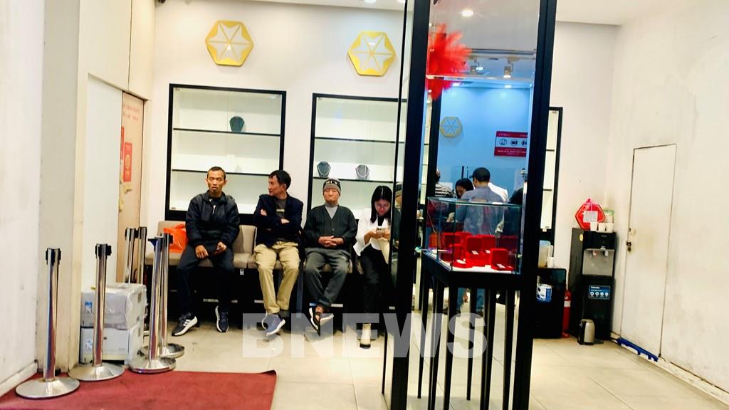 Khách hàng ngồi chờ đến lượt vào giao dịch ở các khu vực bán vàng miếng và nhẫn tại của hàng vàng Phú Quý. Ảnh: Ngọc Trần/BNEWS/TTXVN