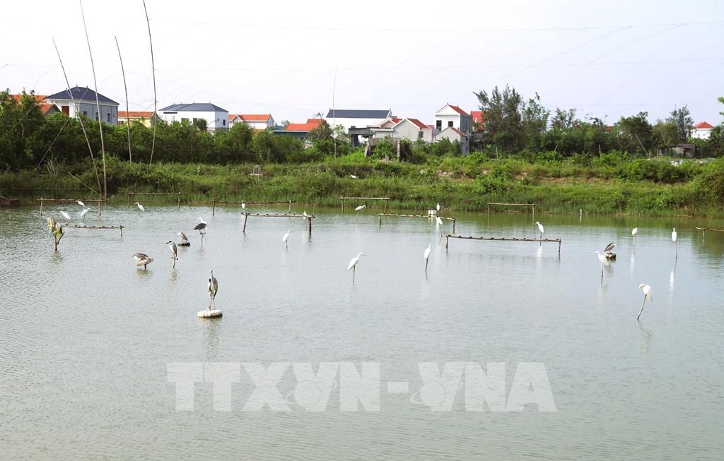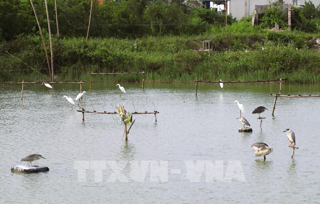 Ao, đầm nuôi tôm, cá của người dân ở xã ven biển Quỳnh Phú (tỉnh Nghệ An) biến thành khu vực bẫy, bắt chim hoang dã từ hơn 1 tháng nay. Ảnh: Xuân Tiến - TTXVN